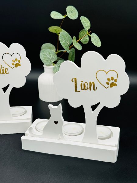 🐾 Personalisiertes Haustier Teelicht | Hund mit Baum | Katze mit Baum 🐾 Schöne Deko für zuhause oder als Geschenk für die Liebsten 🤍 Handgegossene Deko aus Reliefgießpulver.