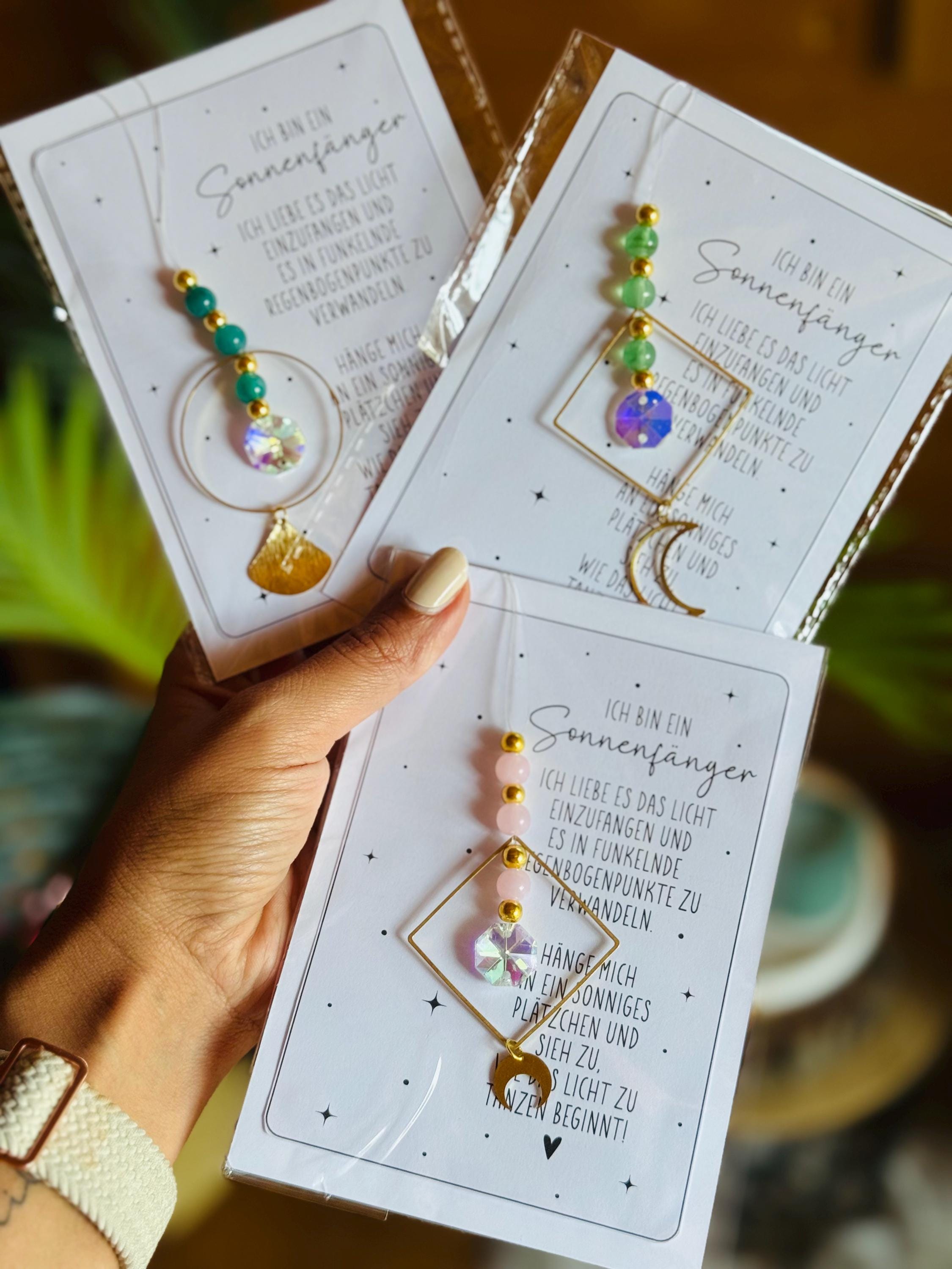 Handgemachte Sonnenfänger verpackt mit einer Sonnenfängerkarte. Preis pro Stück.