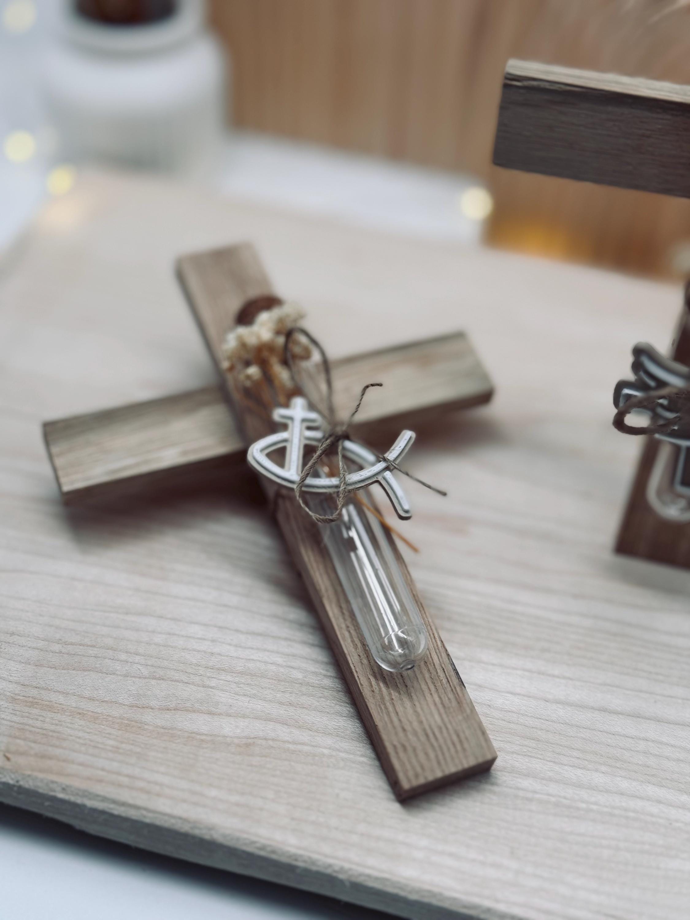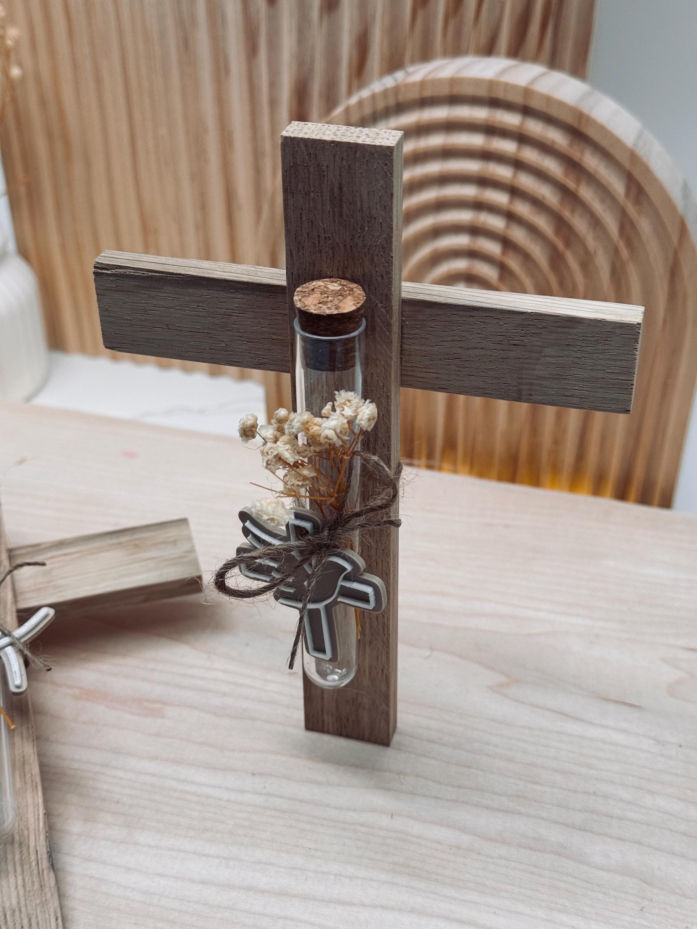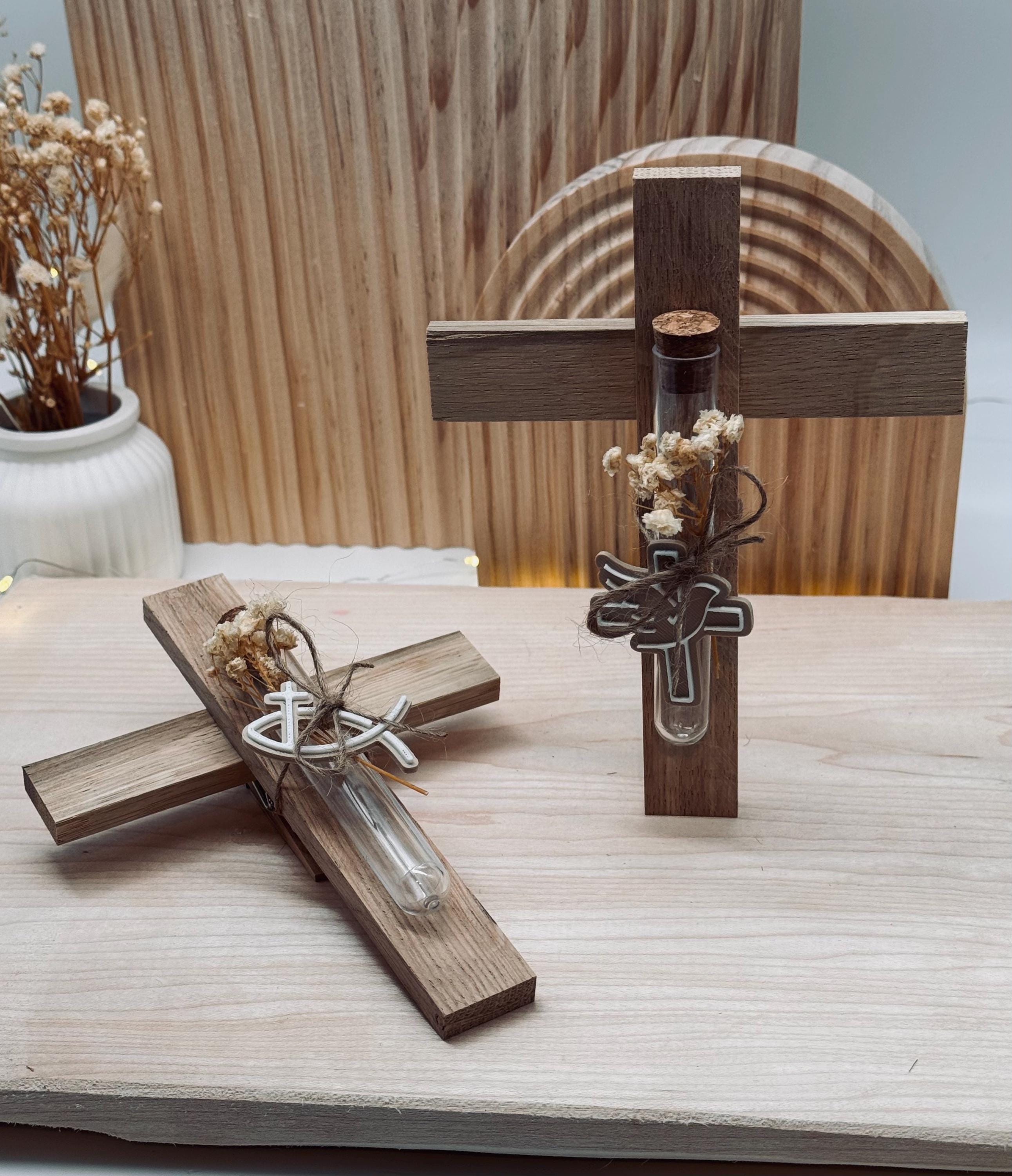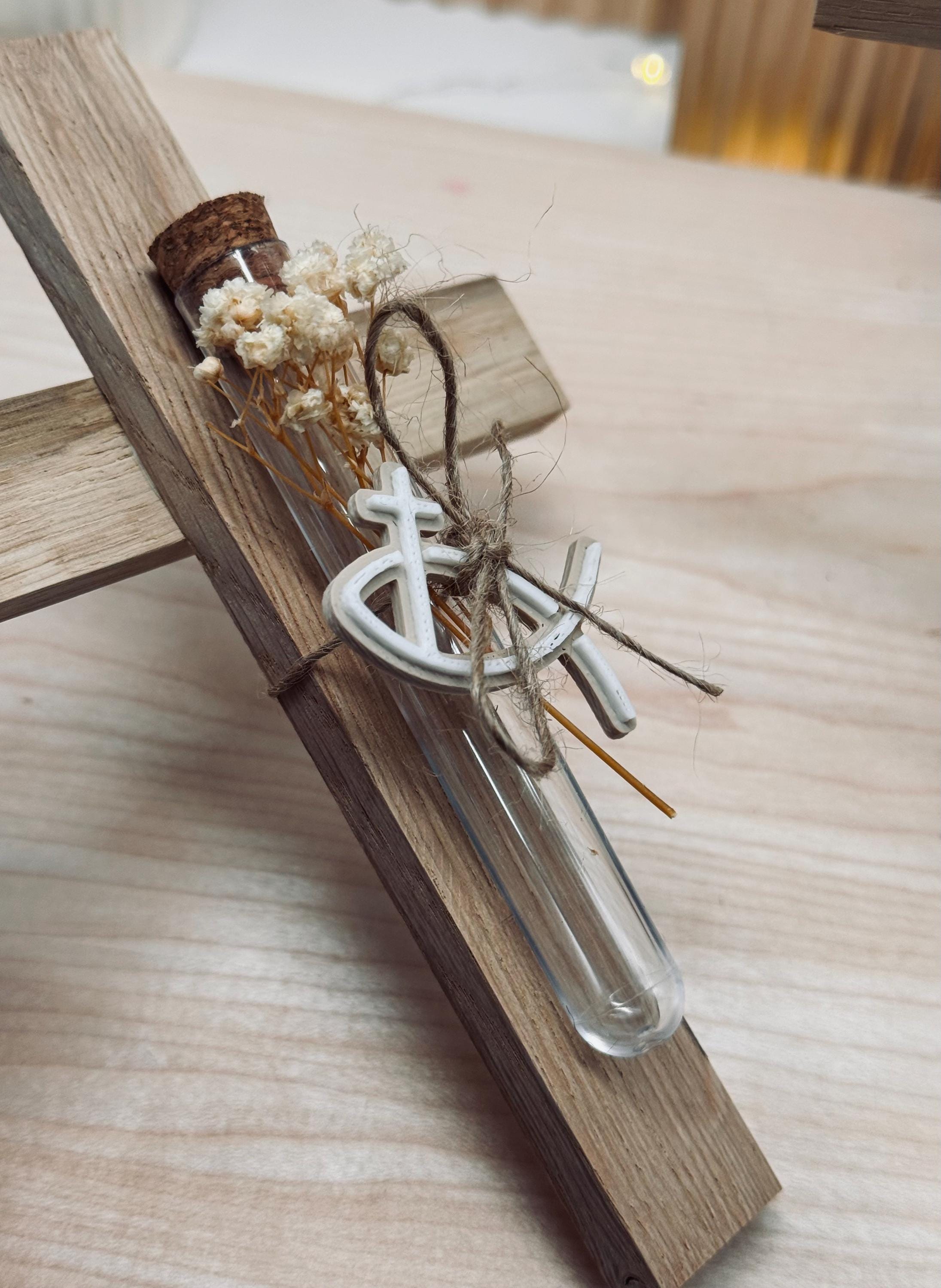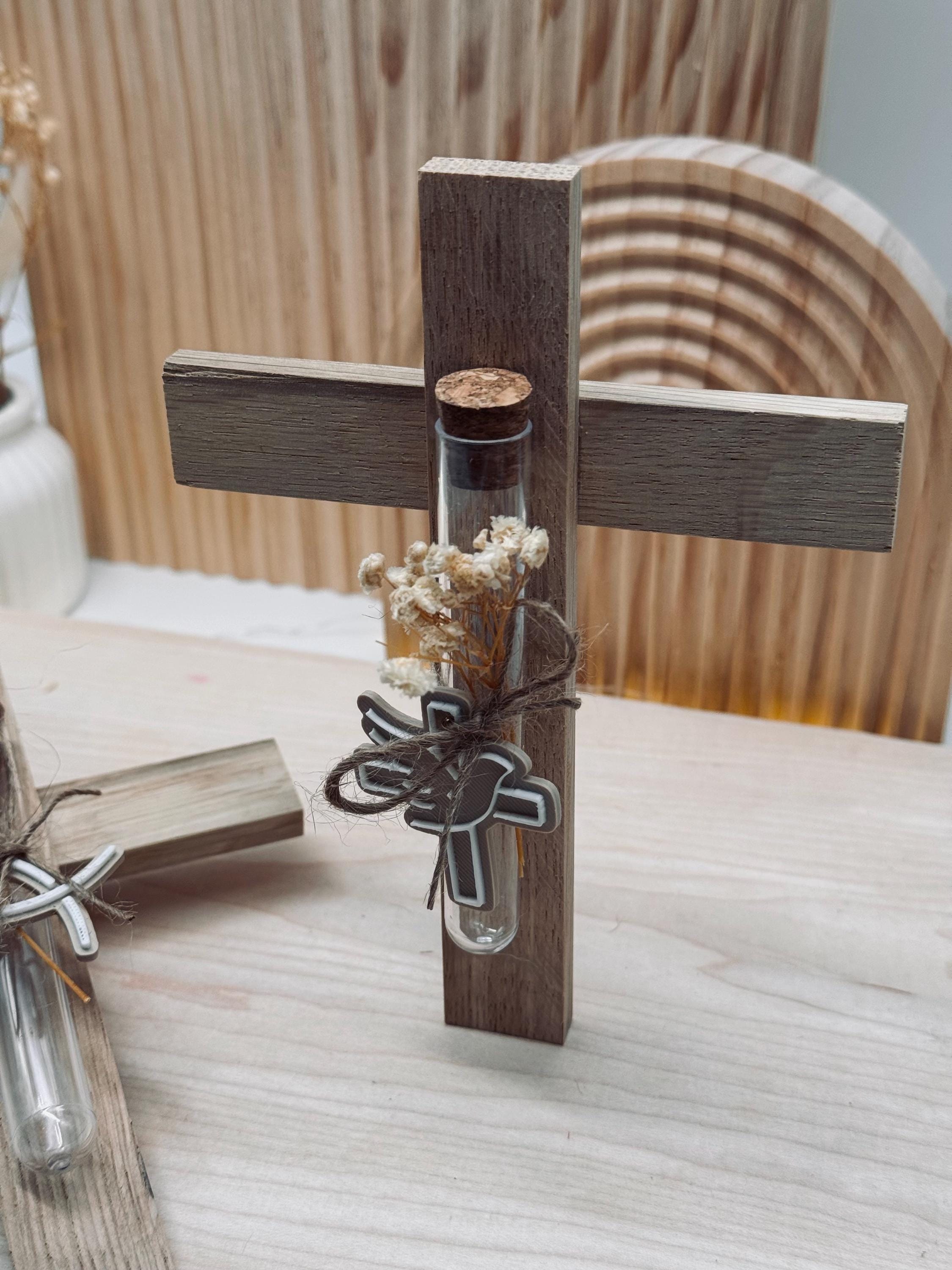 Maße: Reagenzglas (Kunststoff) Länge: 11 cm - Ø aussen 21,4 cm und innen 1,2 cm Kreuz: ca. 16 cm x 12 cm