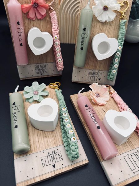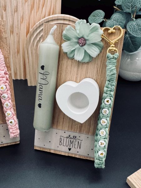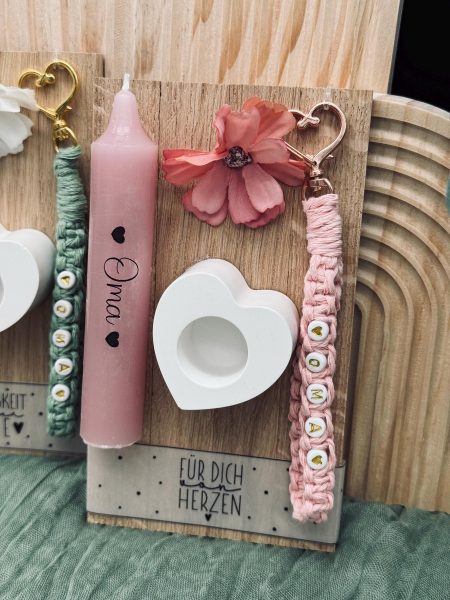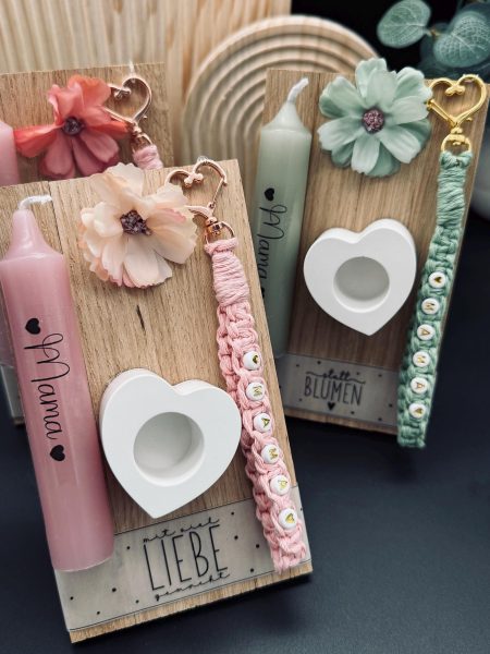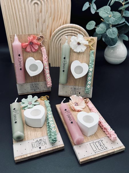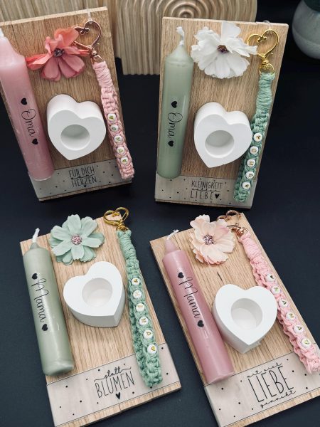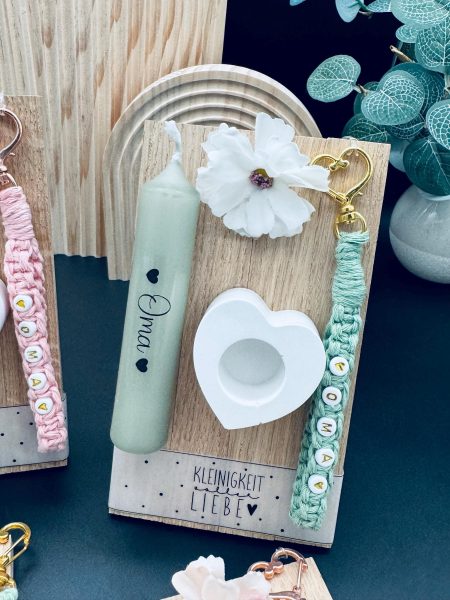 💖 Geschenkset Makramee-Schlüsselanhänger mit Stabkerze und Kerzenhalter| Makramee-Schlüsselgeschenk | Muttertag | Geschenk Mama | Geschenk Oma 💖