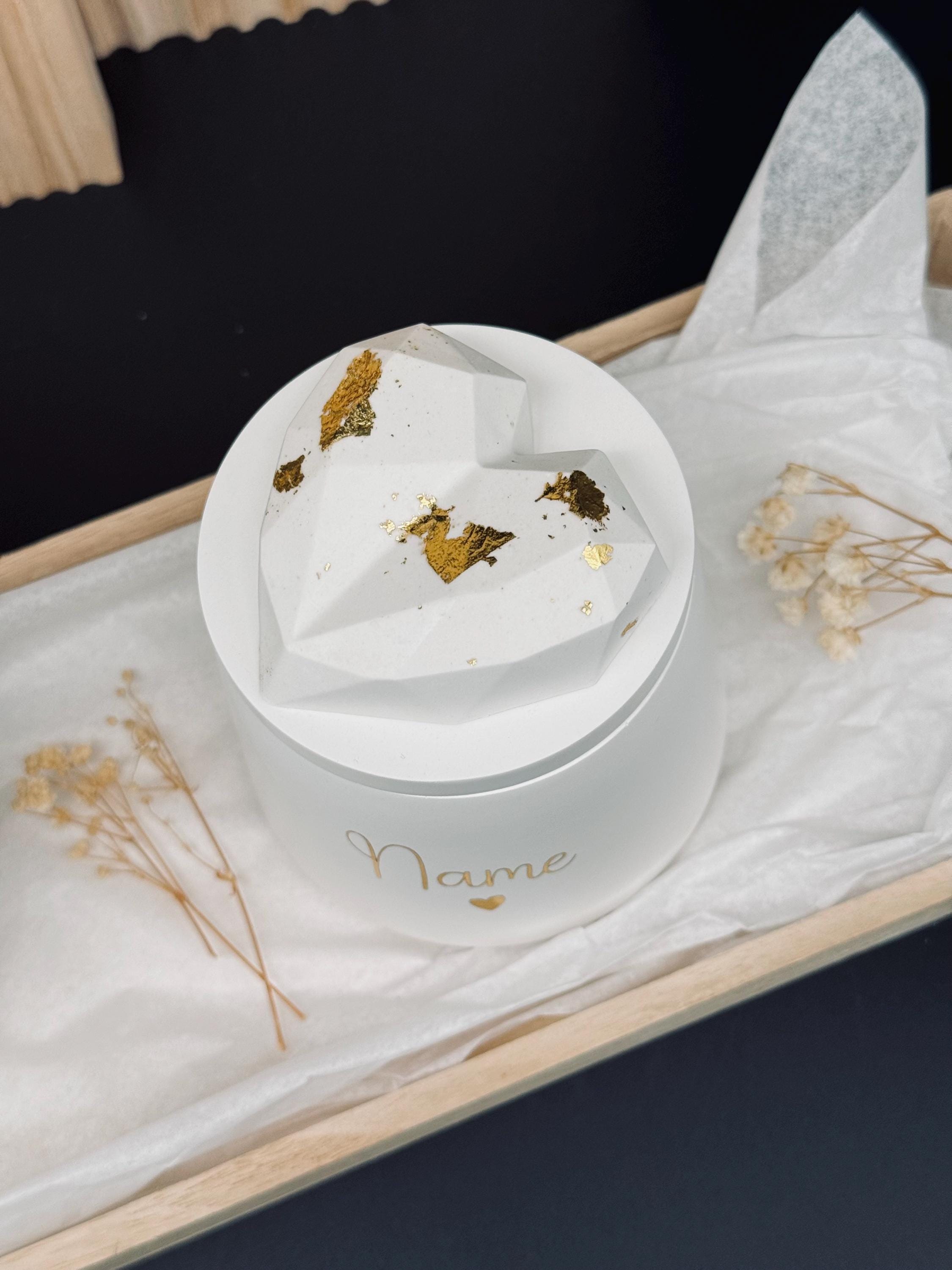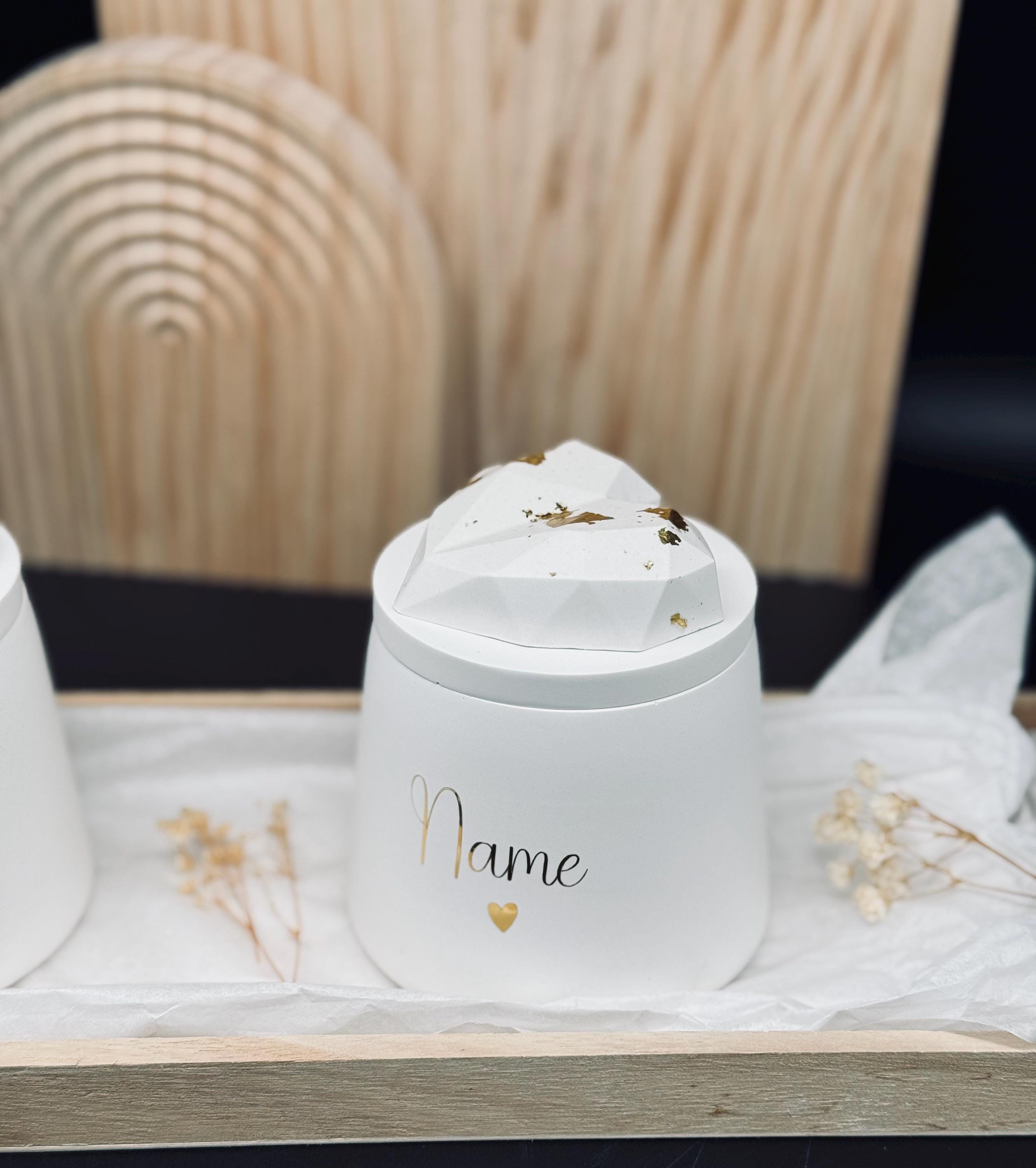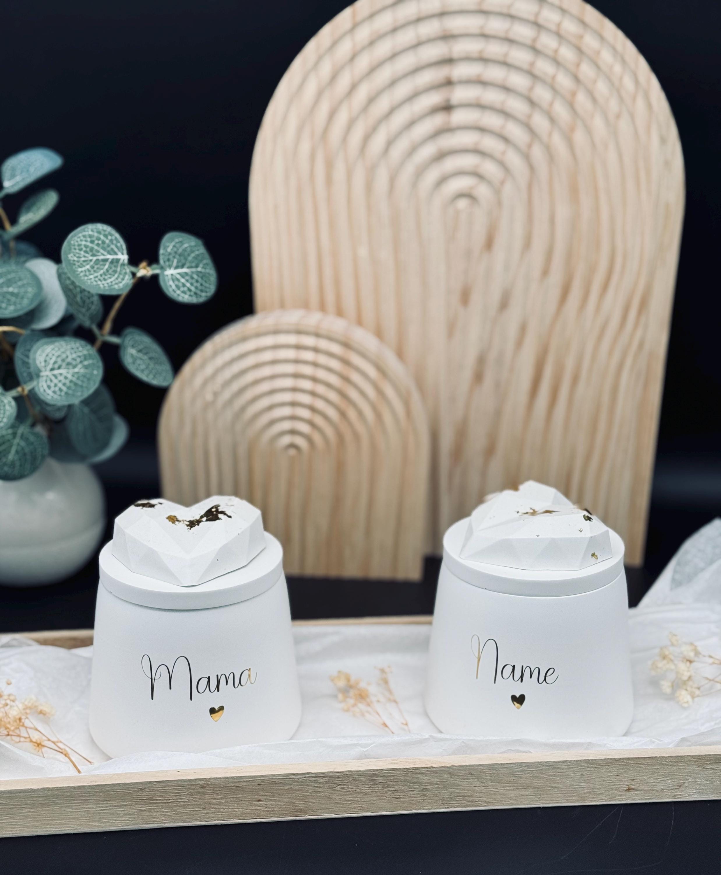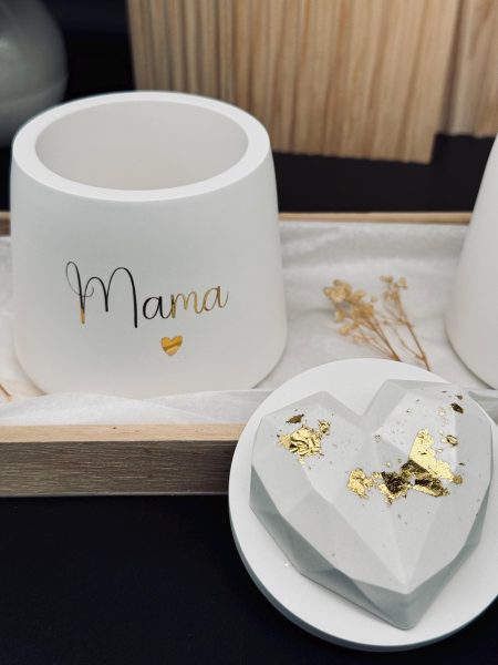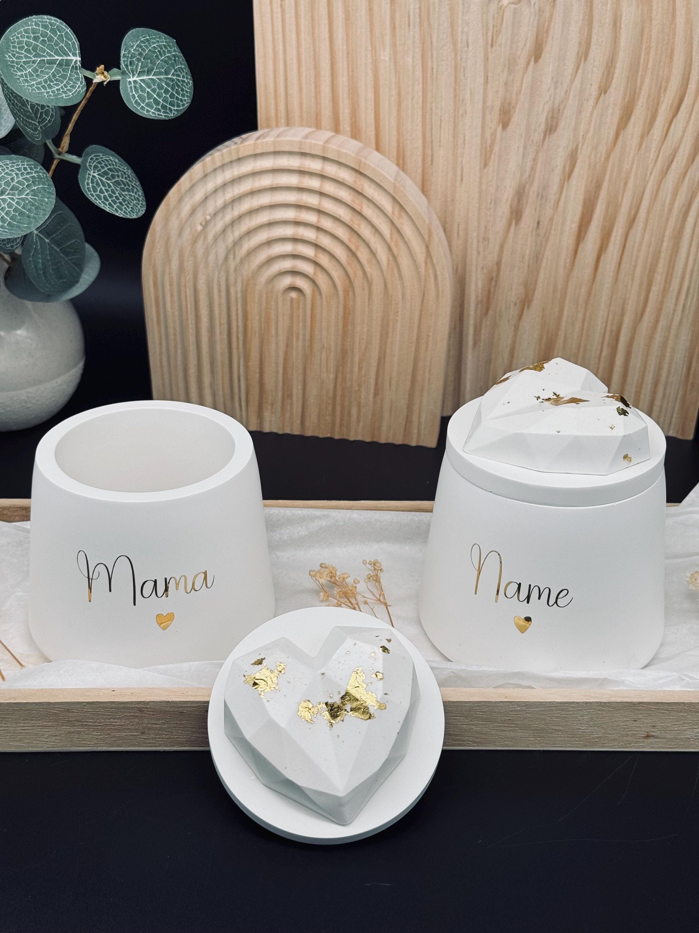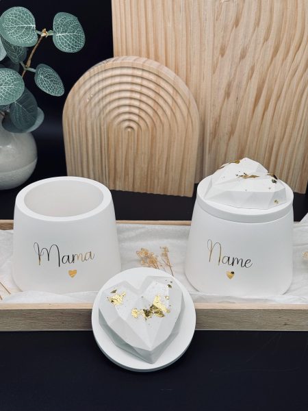 Dose "Mama 🤍" mit Herz auf dem Deckel (verziert mit Blattgold). Oder mit Wunschnamen.