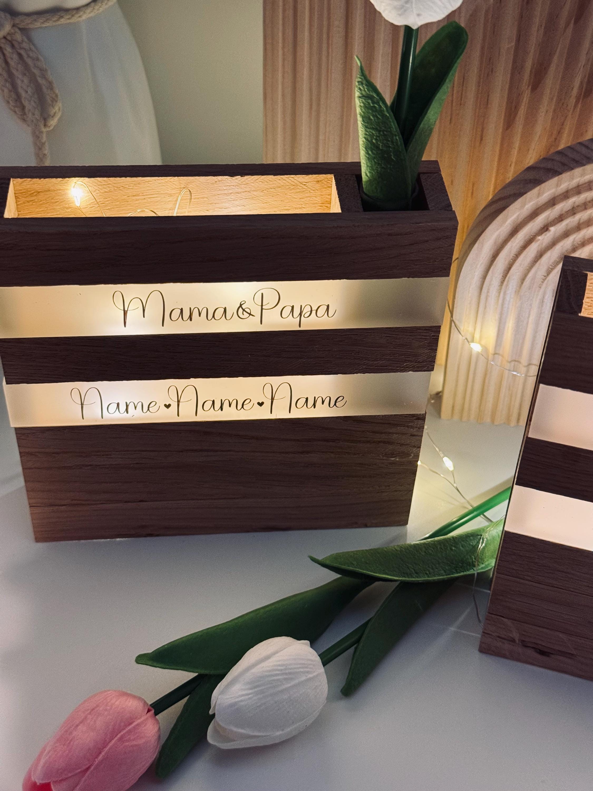 🤍 Personalisiertere Leuchtbox Mama & Papa und Namen der Kinder | Oma & Opa und Namen der Enkelkinder | Mama | Papa | Oma | Opa | Personalisiertes Geschenk Eltern Großeltern🤍
