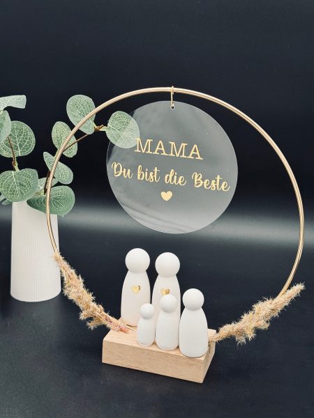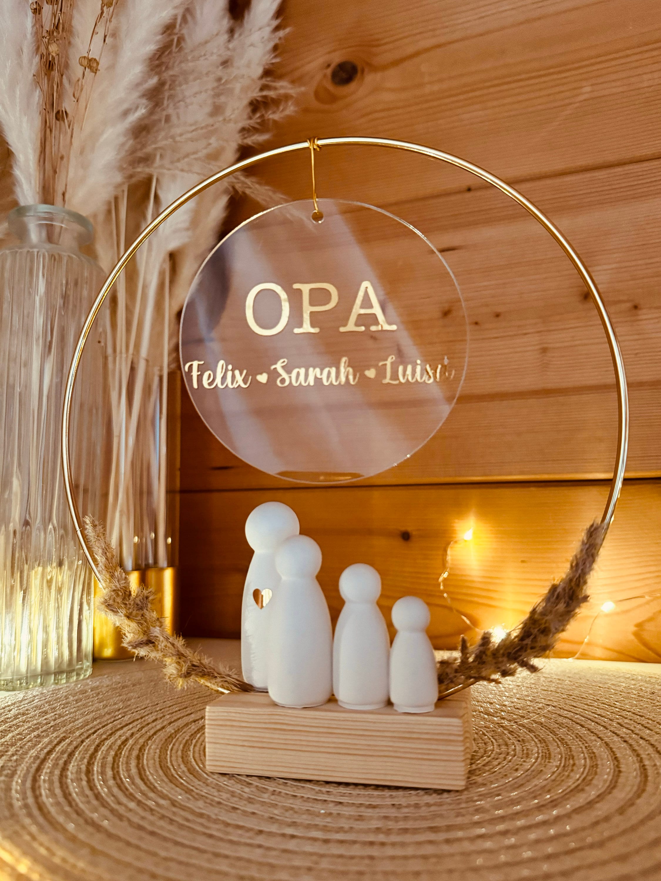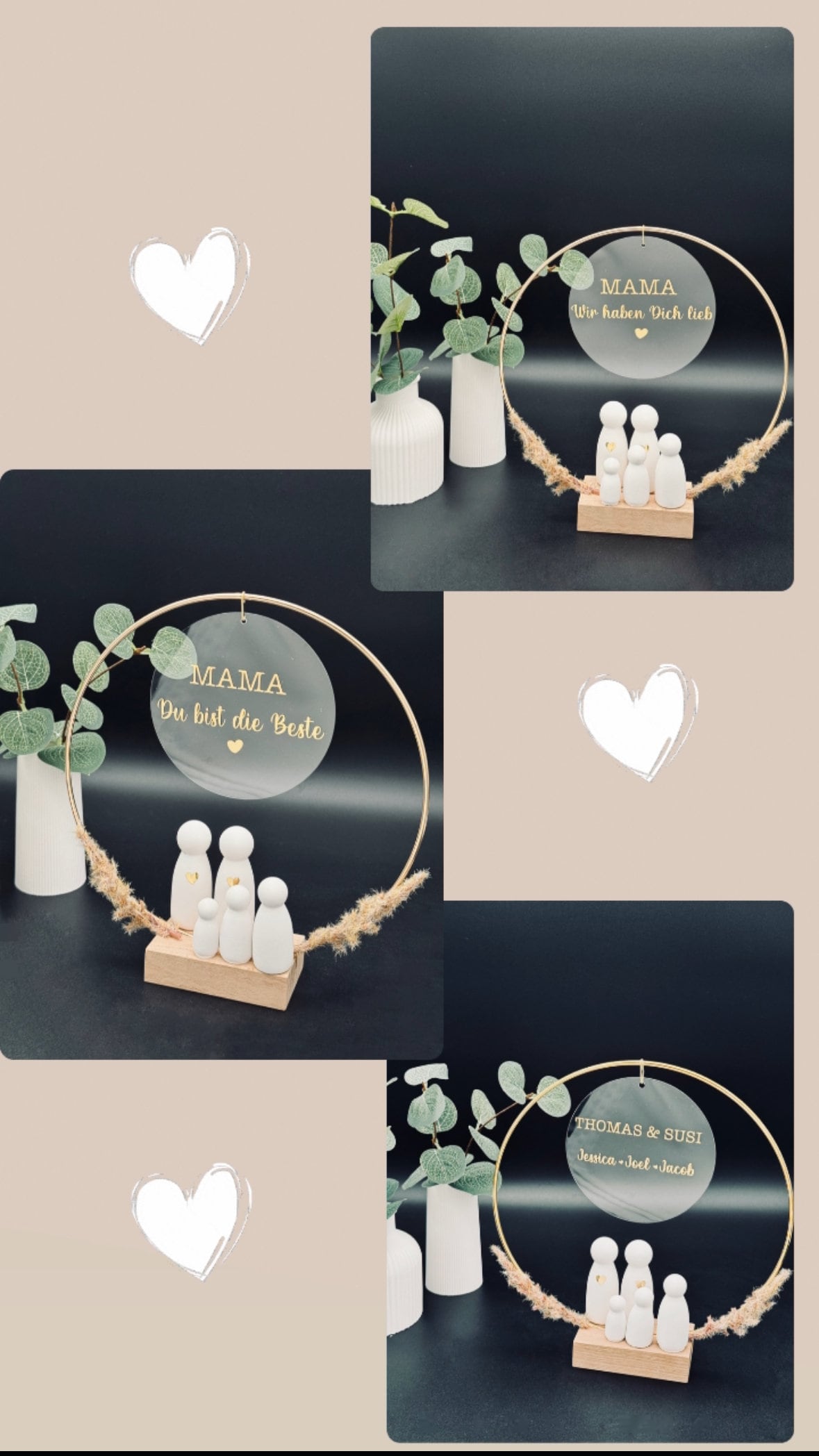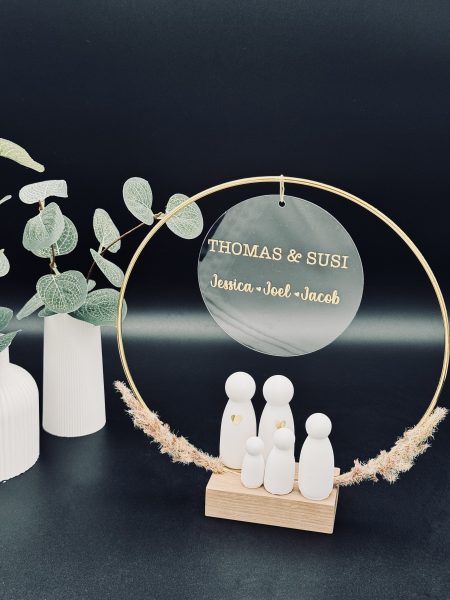 Metallring mit Ständer Acrylplatte beschriftet mit Vinylfolie Figuren je nach Anzahl der Familienmitglieder Kunstblumen