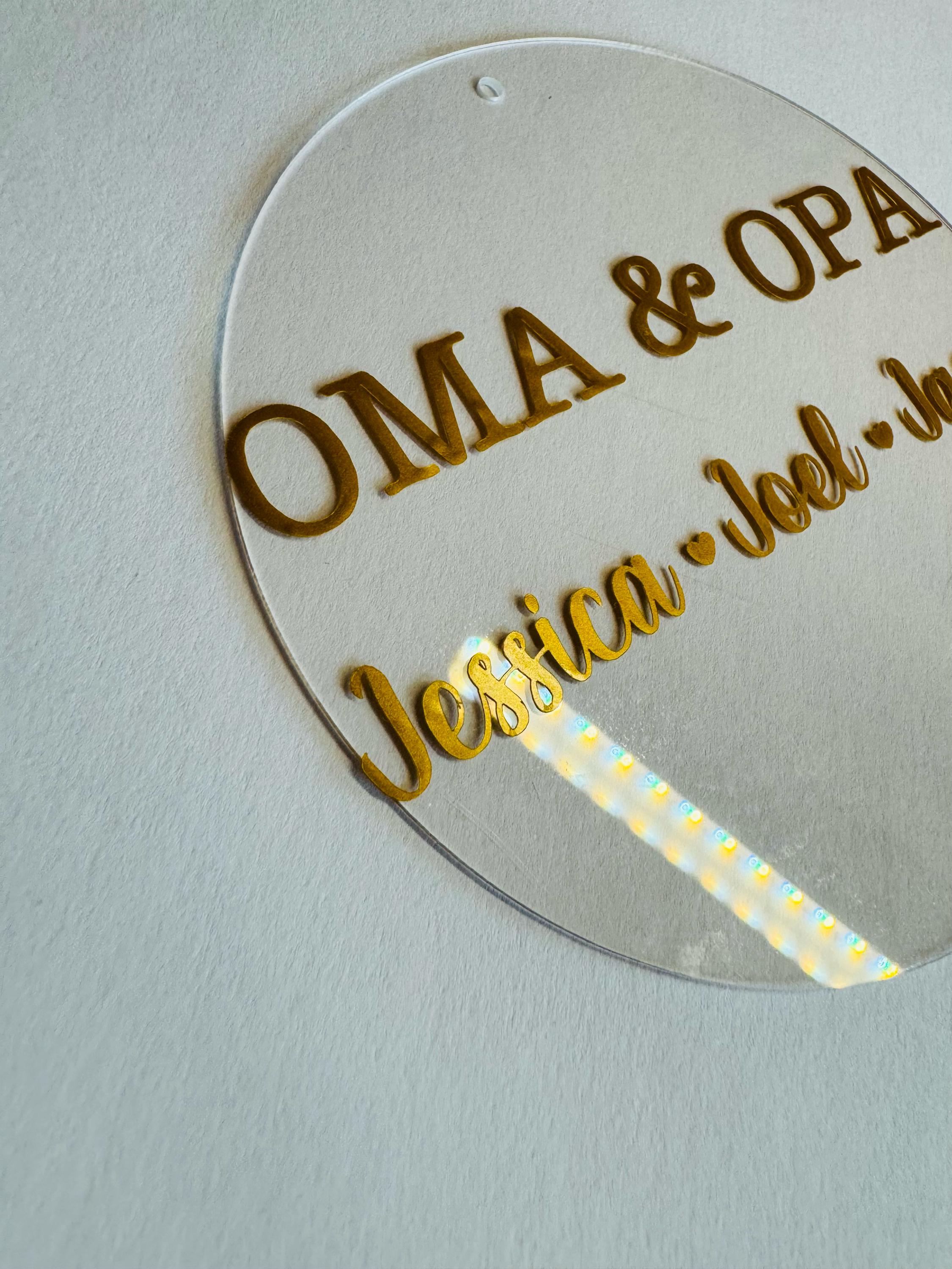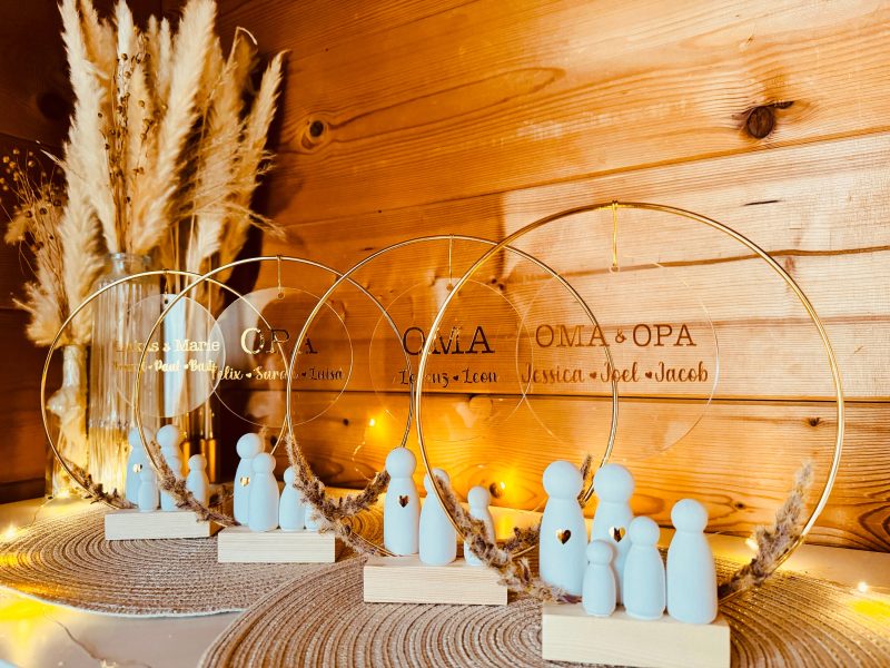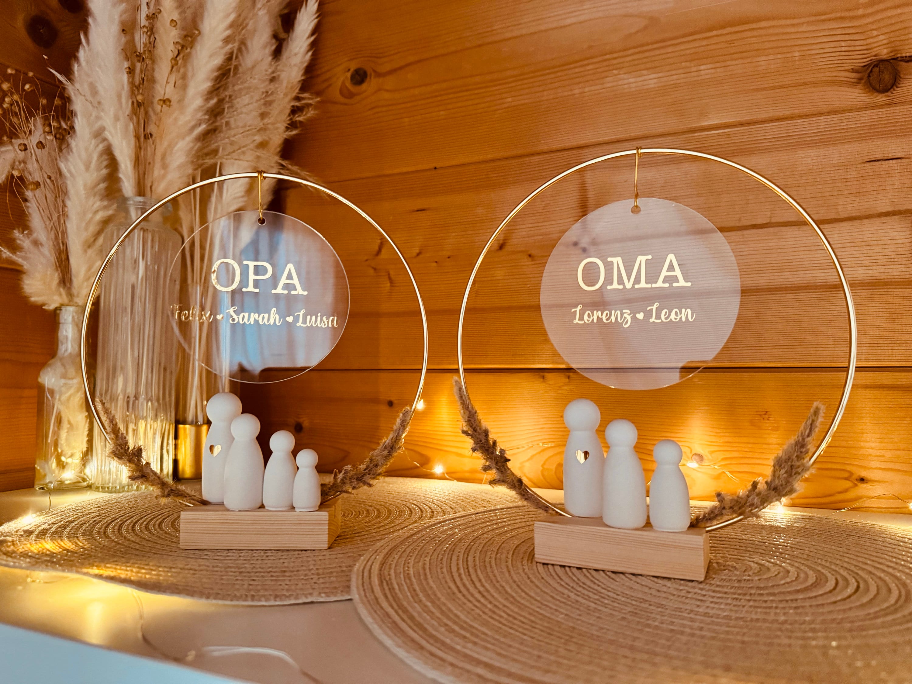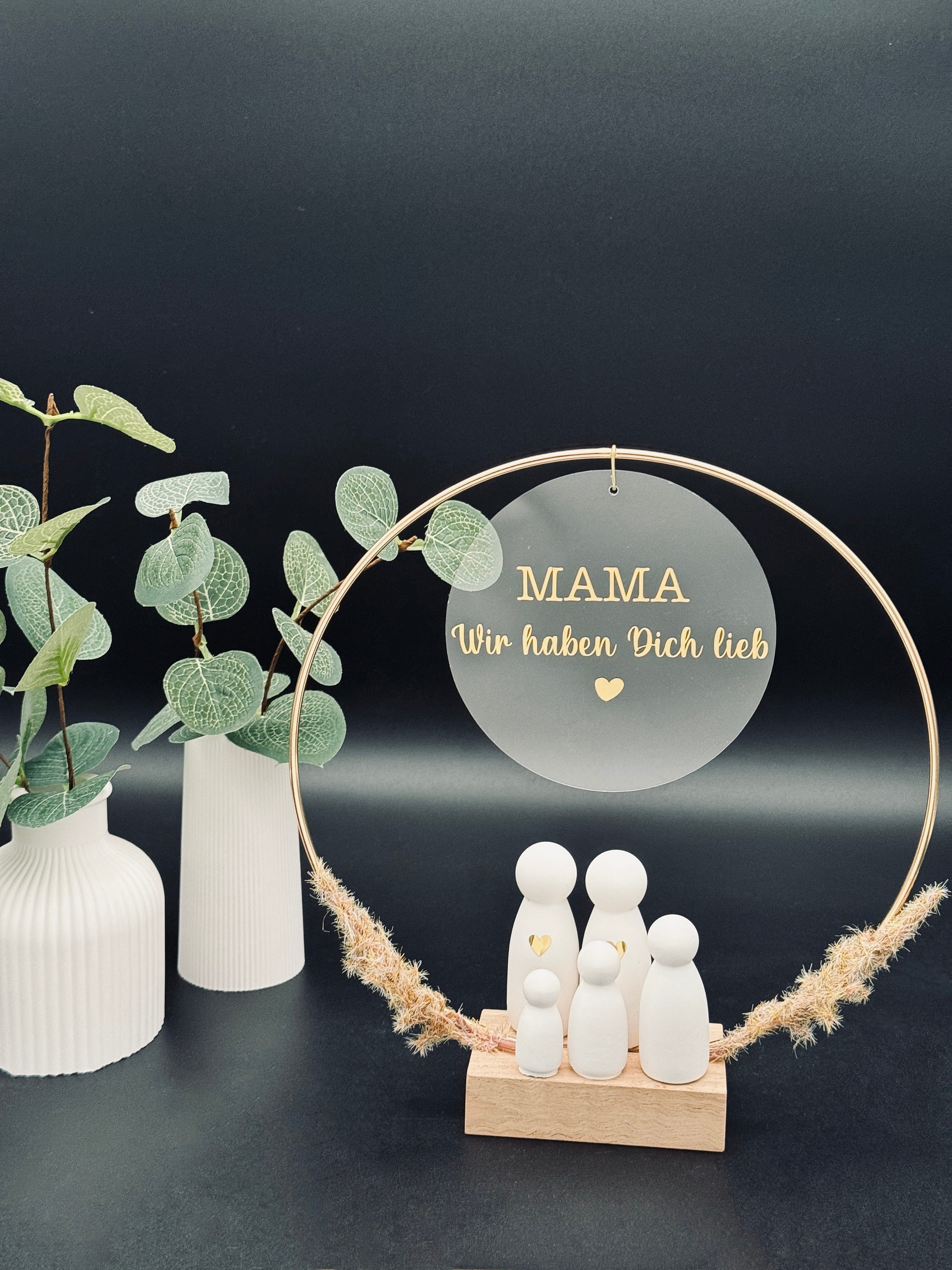 Metallring mit Ständer Acrylplatte beschriftet mit Vinylfolie Figuren je nach Anzahl der Familienmitglieder Kunstblumen