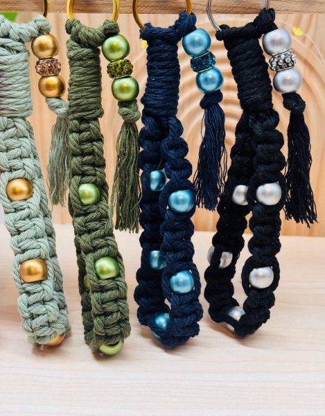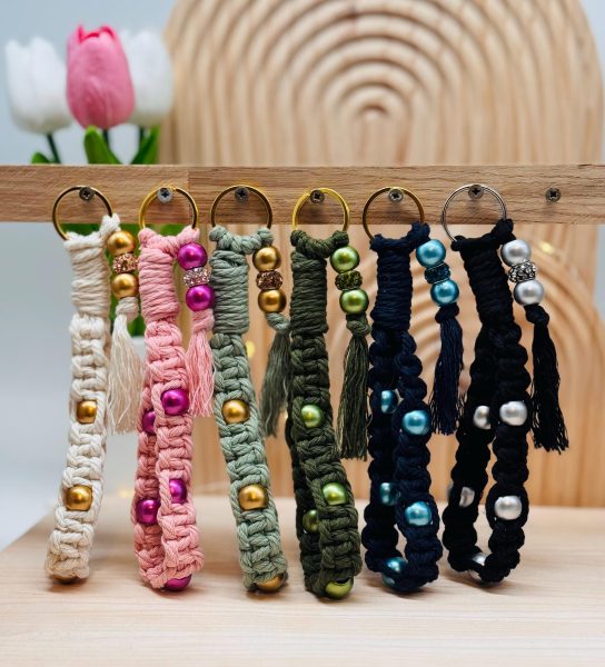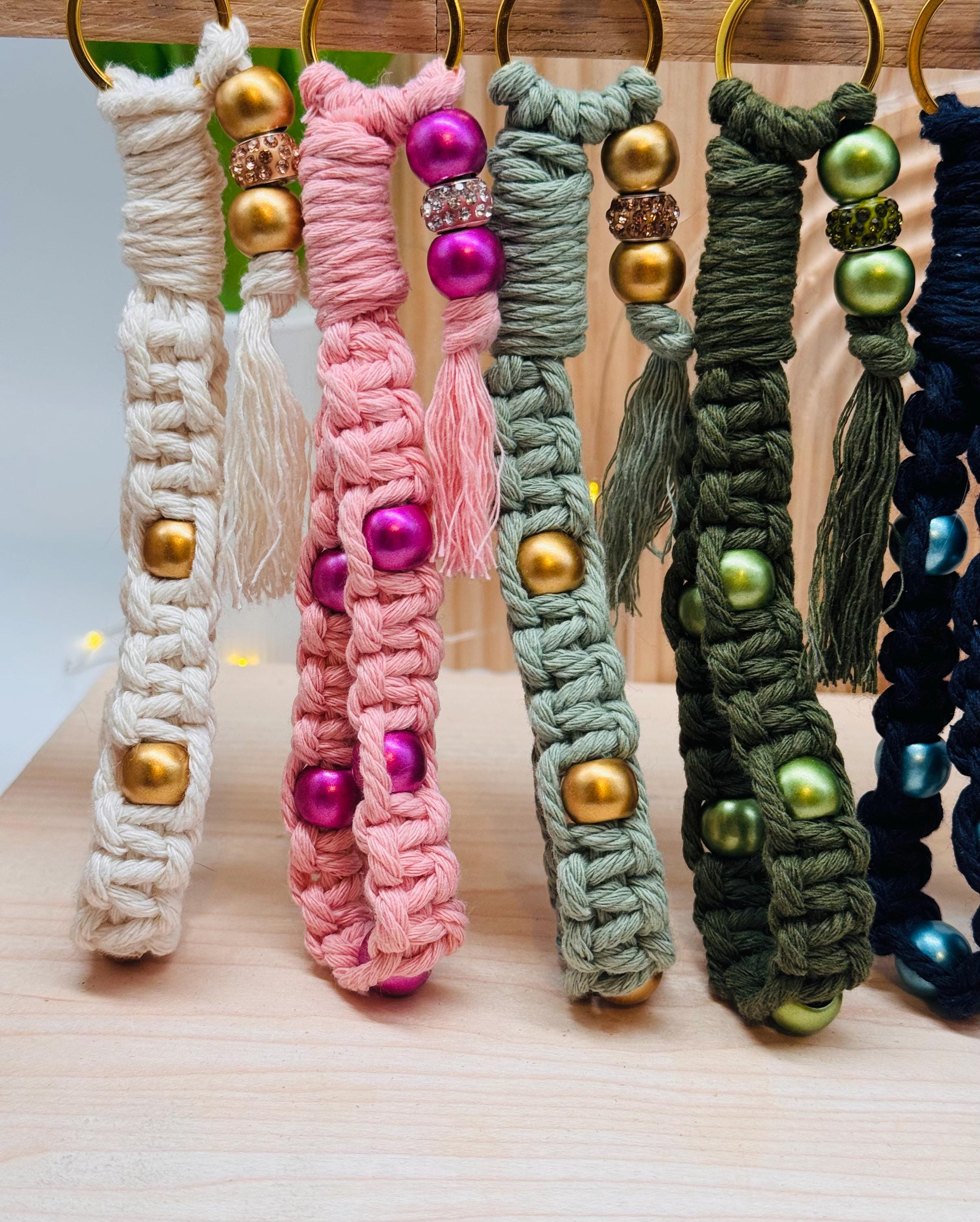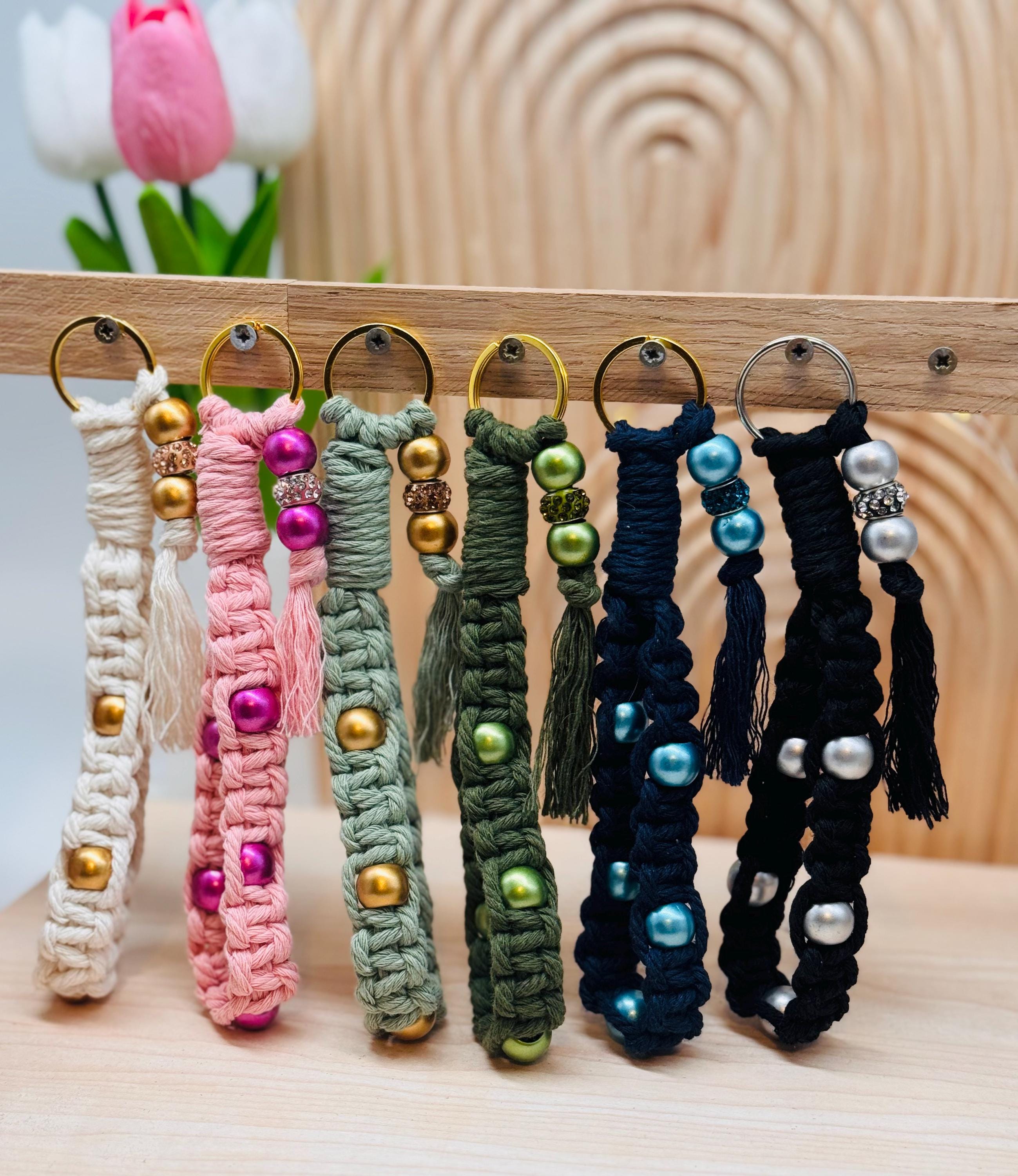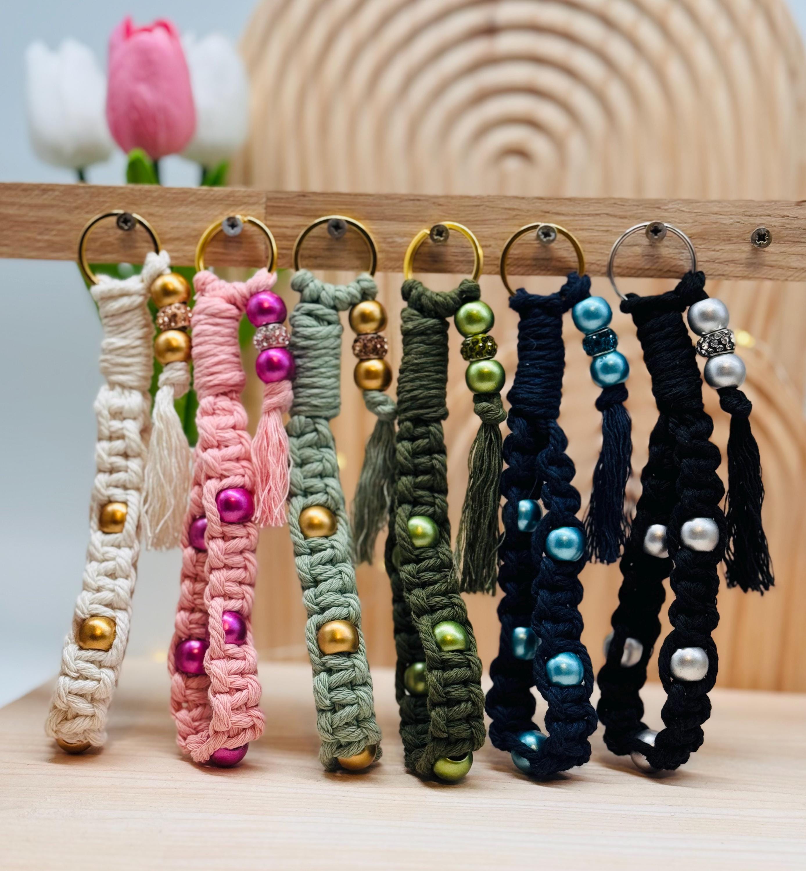 Makramee-Schlüsselanhänger mit Perlen (Kunststoff).